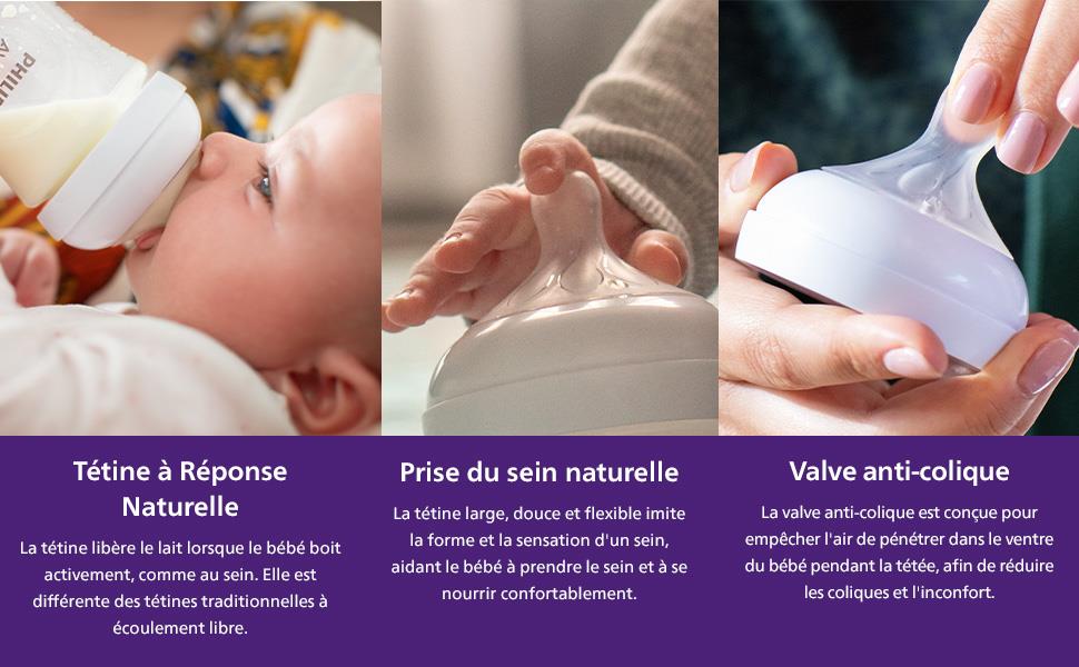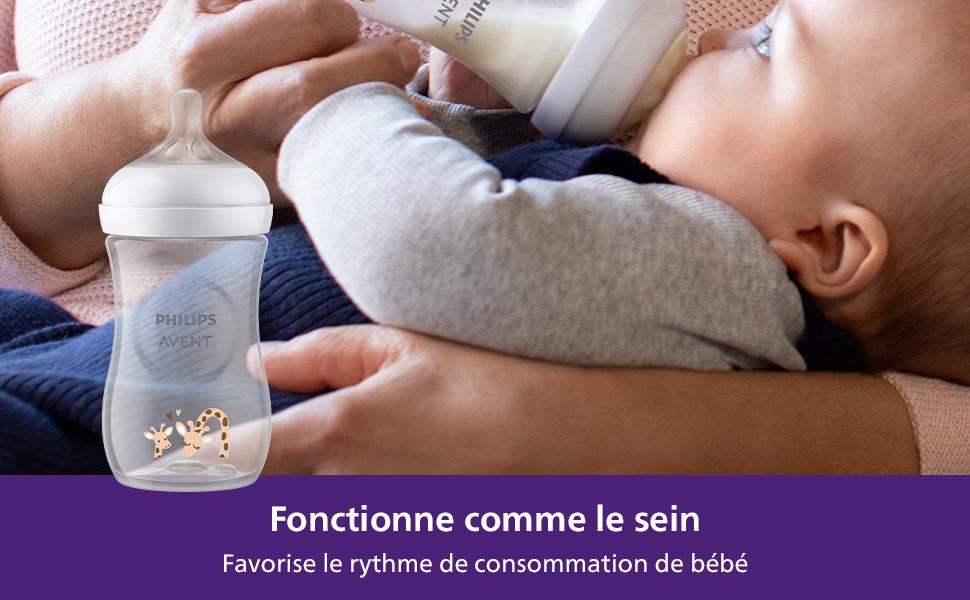 - The nipple of the bottle is designed so that while feeding, the baby sucks, swallows, and breathes at his own rhythm, as in the natural process of breastfeeding. Due to the special design, milk does not come out of the nipple without the baby actively sucking. 89% of moms agree that babies transition easily from breast to Natural Response bottle and back.